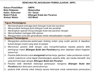 RPP 1 Lembar Matematika Kls VII SMP Kurikulum 2013 Revisi 2019 Unduh File
